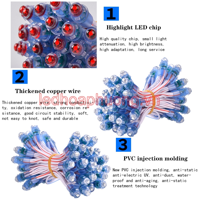 -Bóng led 5mm đế đúc cao su 8mm,độ bền và độ sáng đồng đều rất cao. Chống chịu thời tiết, dùng thi công các biển quảng cáo cỡ trung bình và lớn. Thi công rất nhanh và tiện lợi