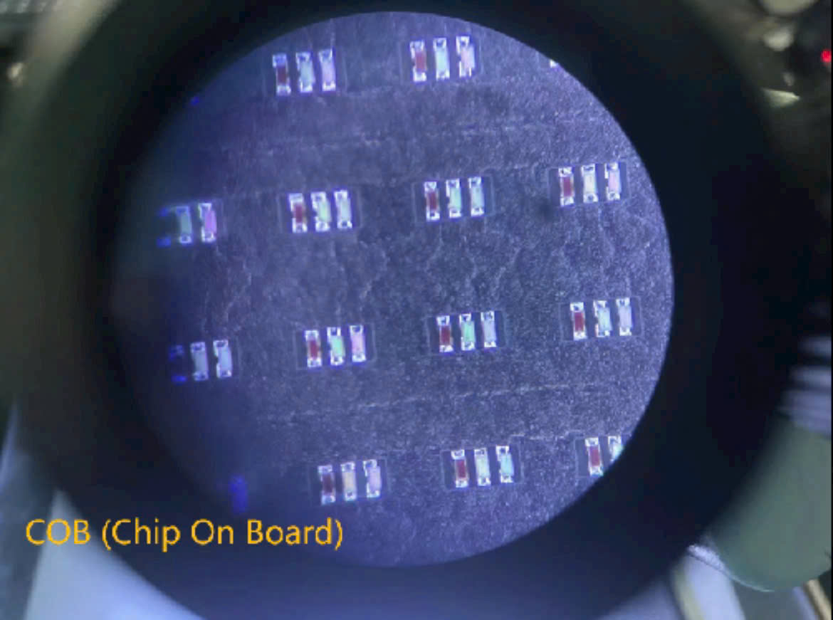 COB (Chip On Board) là công nghệ đóng gói chip LED trực tiếp lên bảng mạch mà không thông qua chân đỡ. Các chip LED được phủ lớp keo chống ẩm, giúp tăng độ bền và khả năng chống chịu môi trường.